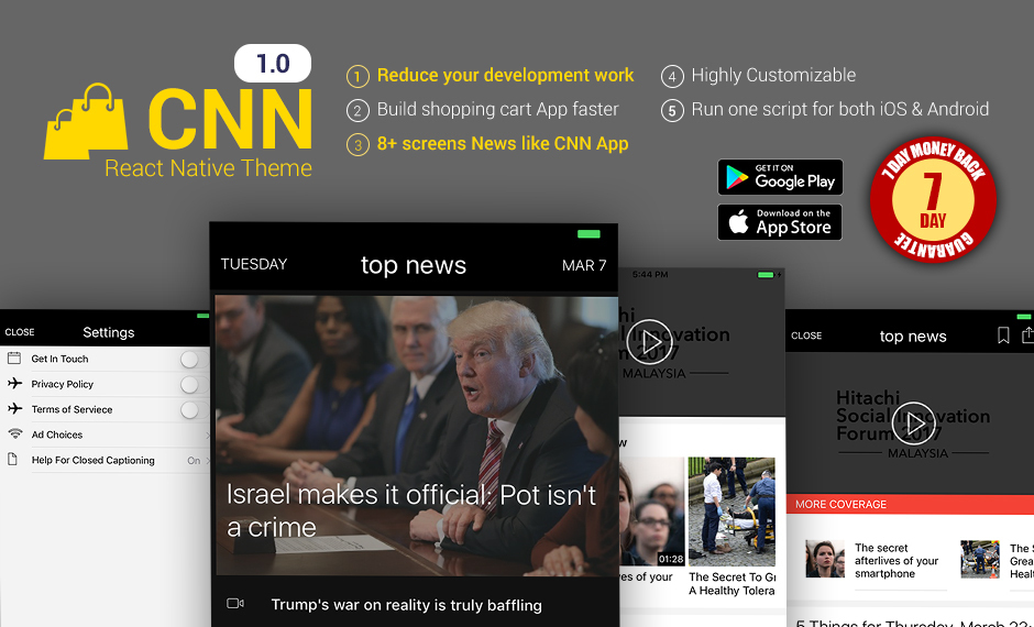 Your client want to have an APP just like CNN? Don’t you have enough time to design it from the ground? You know coding but don’t know designing? You’re right, we understand you as yourself. Let’s get it done with hand-crafted themes that inspired from CNN.