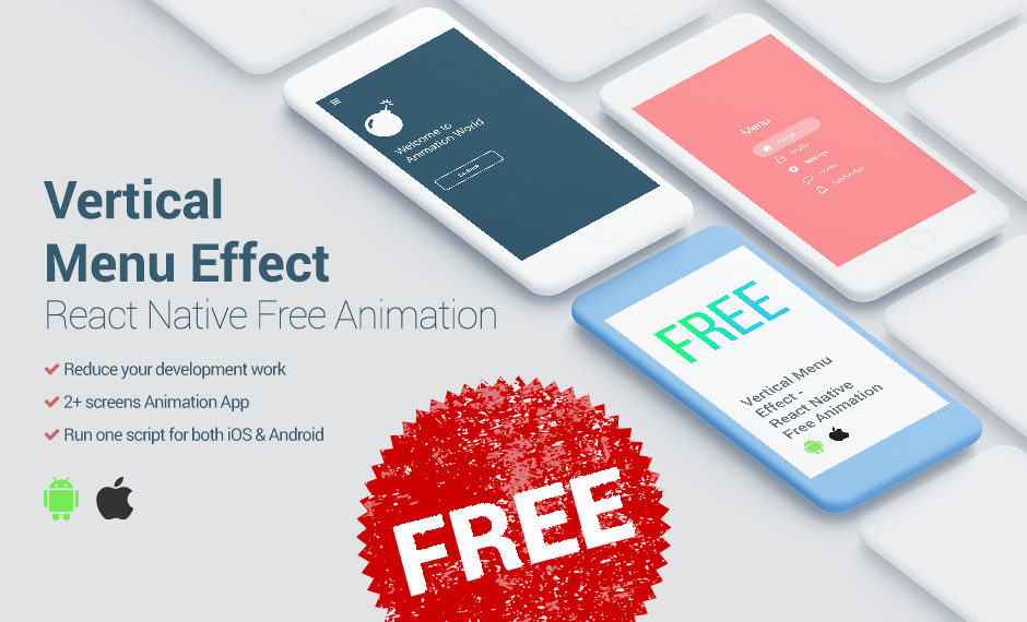 Vertical Mobile Menu Effect - React Native Free Animation. It helps you create the pushy vertical menu quickly and professionally. It's easy to customize and develop. Yeah, It's Free!